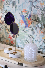 Uma peça decorativa que combina a energia vibrante da ágata roxa com a elegância intemporal do mármore Calacatta e a delicadeza do latão. A Ágata PURPLE EYE foi pensada para acrescentar personalidade, cor e sofisticação a qualquer ambiente.