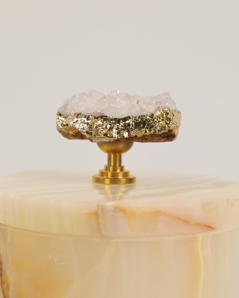- Com opção de aplique em ágata amarela ou em geodo branco.
