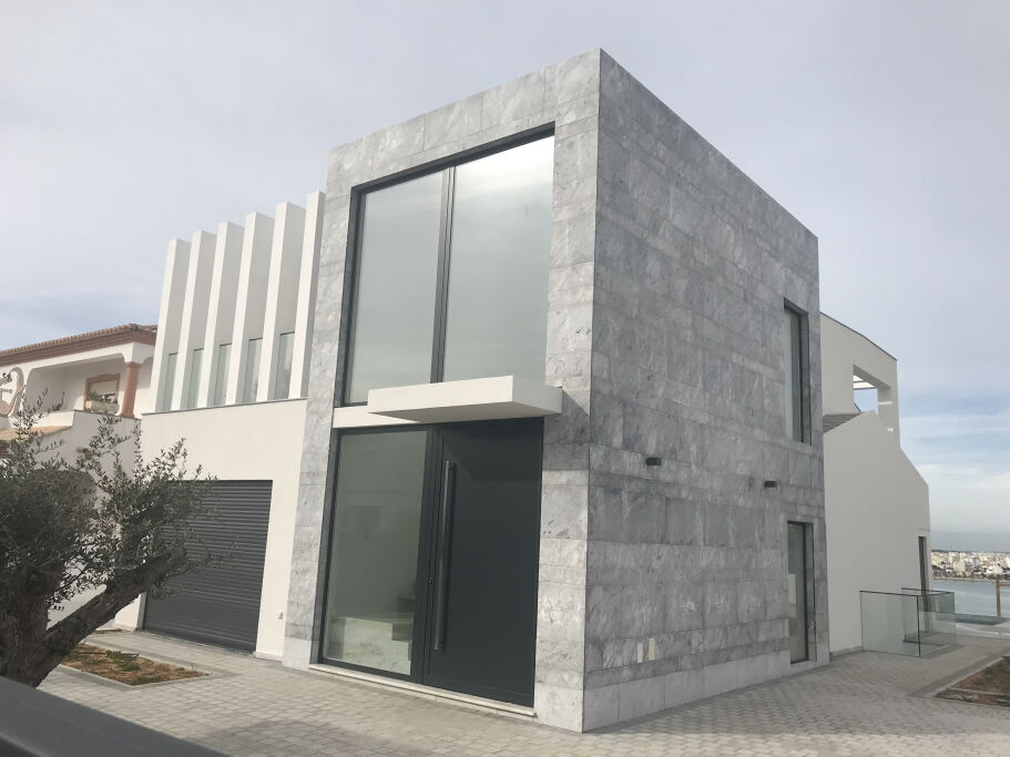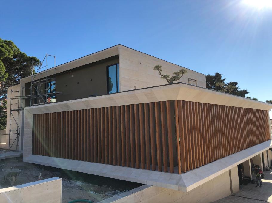 Fourniture et application de façades ; Sols et Escaliers Intérieurs ; Sols et Murs des IS, y compris les receveurs de douche modèle PURE byannopei et les lavabos modèle PURE et Basiq byannopei ; Sols extérieurs et bord de piscine. Le tout en marbres naturels assortis.