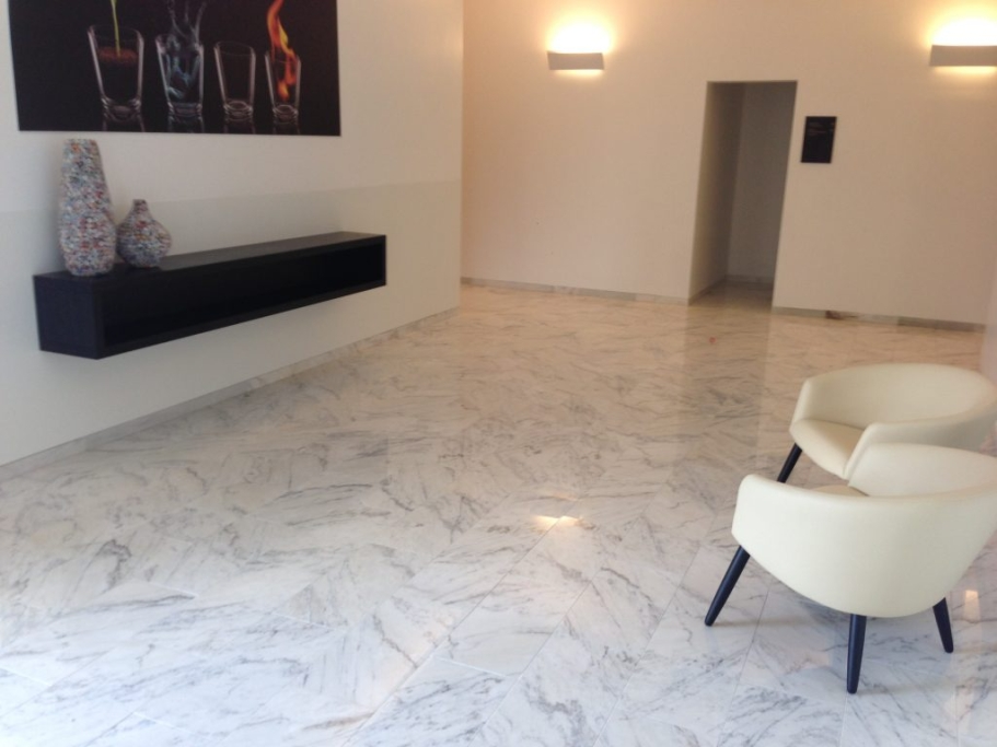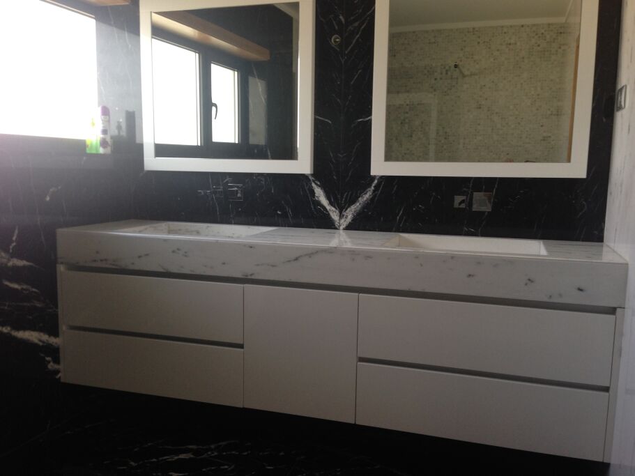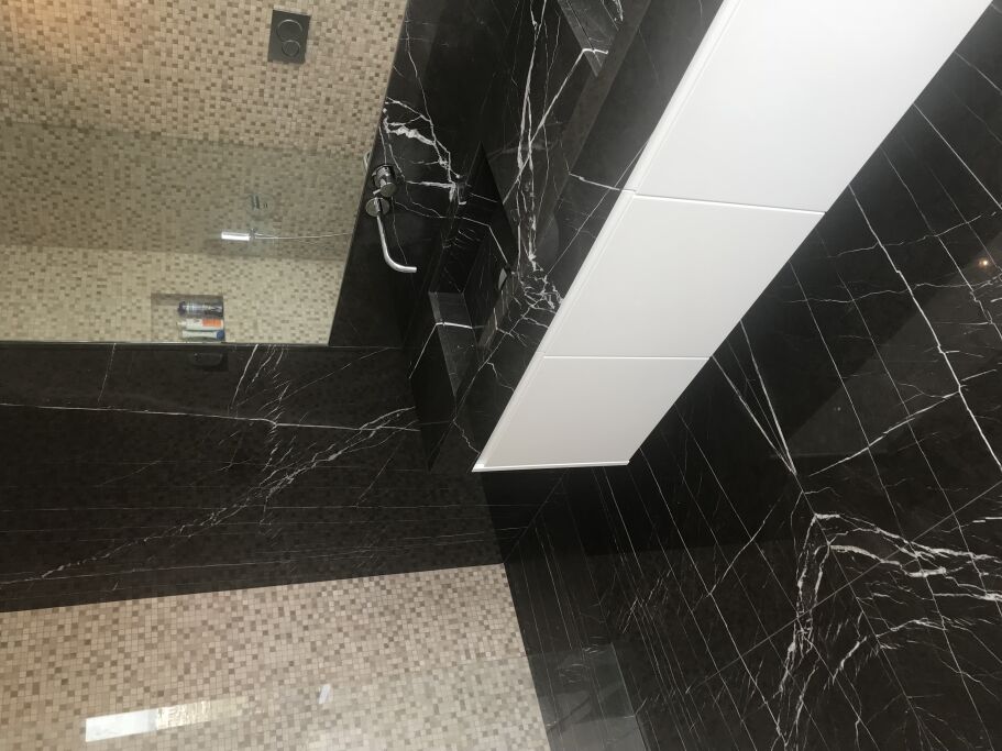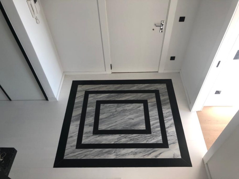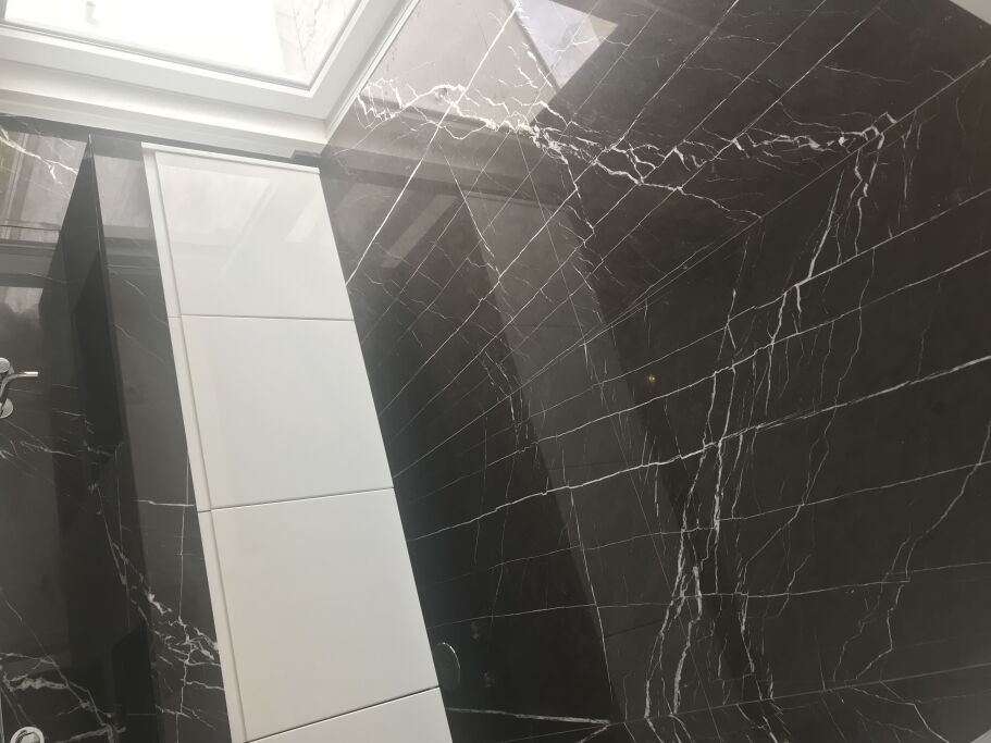 Fourniture et Application/Assemblage de Sols, Baignoires, Receveurs de Douche, Lavabos, Cuisine et Meubles/Pièces de Décoration en Marbre Nero Marquina, Marbre Bianco di Carrara, Granit Noir Zimbabwe et Quartz Extra Blanc.