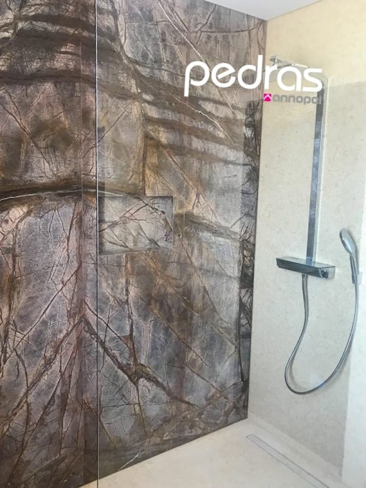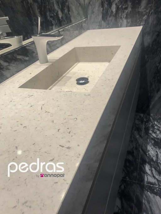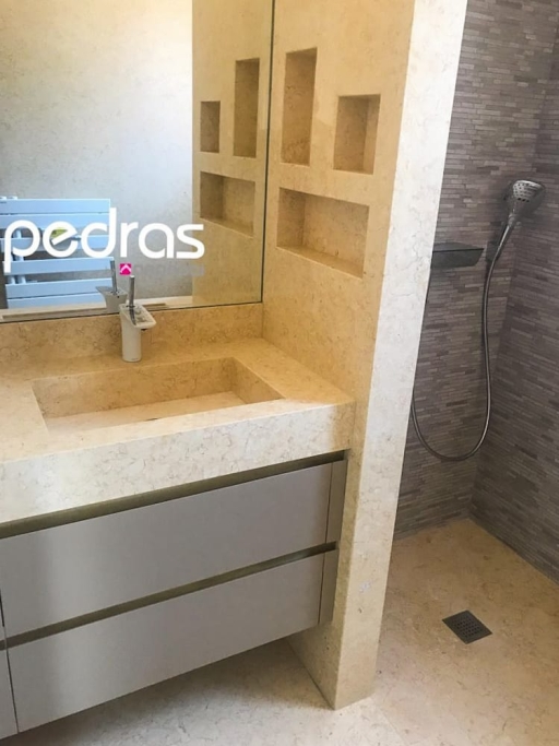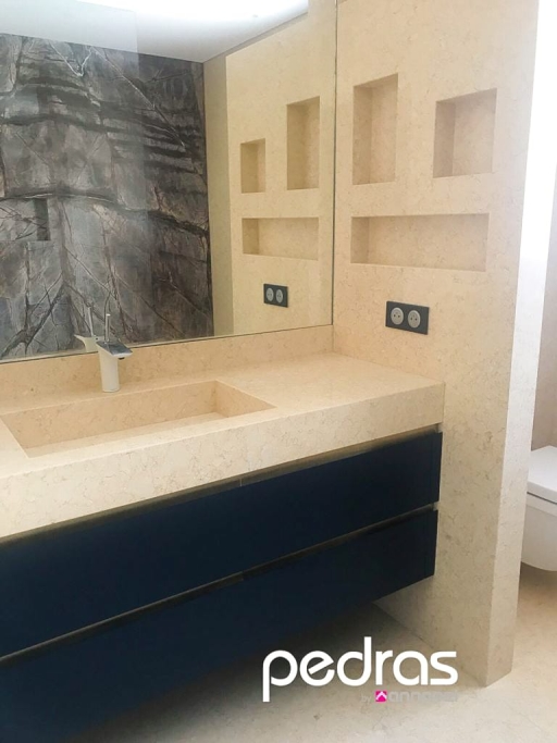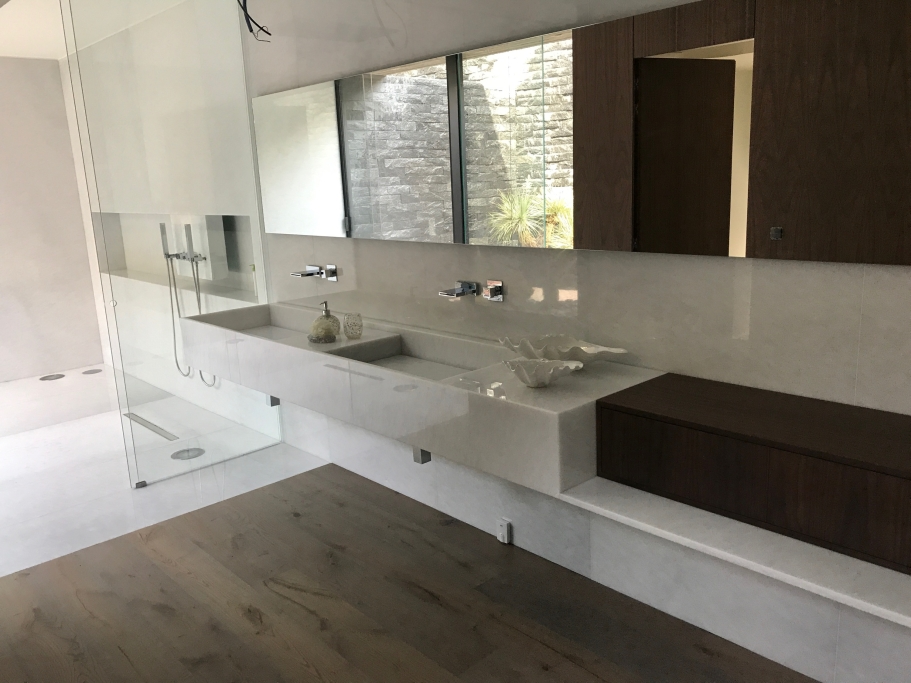 Conception, fourniture et application de diverses pierres dans les sols généraux ; Banc de cuisine; Récupérateur; Baignoires, y compris receveurs de douche et lavabos PURE byannopei ; Inserts en marbre dans certaines douches ; Sols extérieurs et piscine.