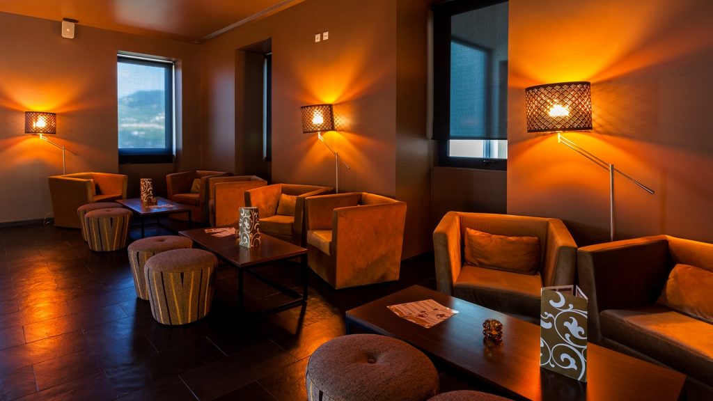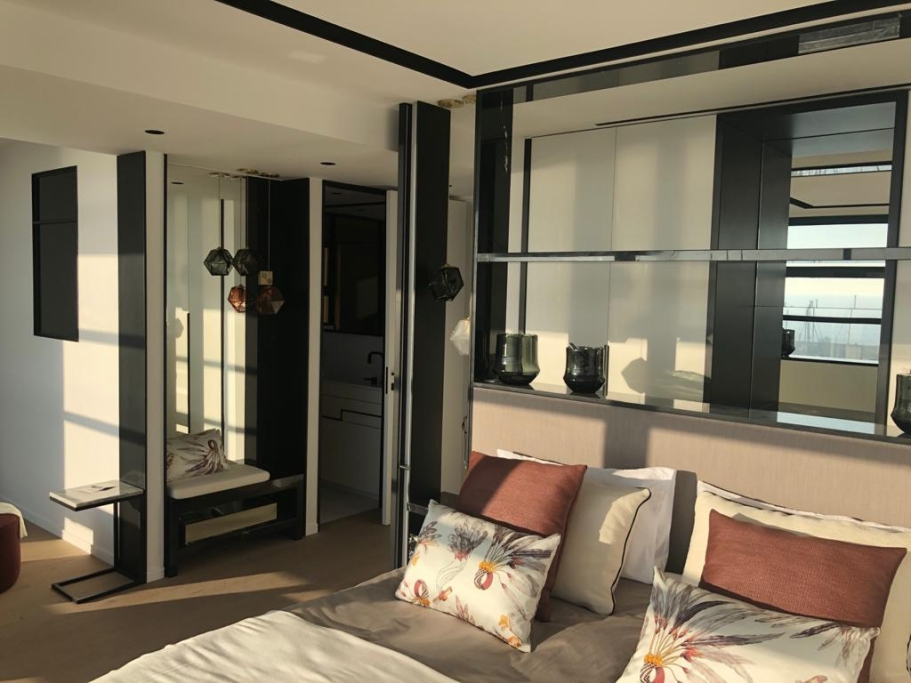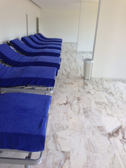 Fourniture et application de marbre national dans les sols des espaces sociaux de l'hôtel, du spa, des piscines ; Sols et receveurs de douche modèle PURE byannopei dans l'IS des chambres ; Comptoir de bar.