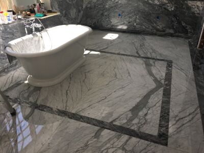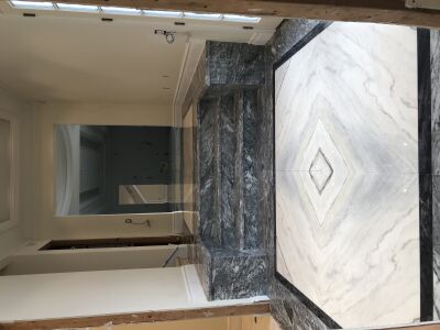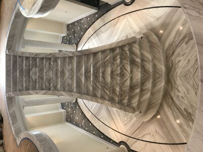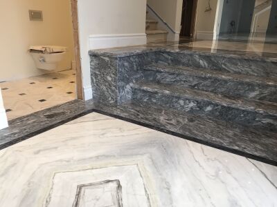 General floors with Bookmatch ends; Main stairs in round and with Bookmatch; Several Baths with Shower Bases, Wall, Floors and Washbasins; Kitchen Countertops.
