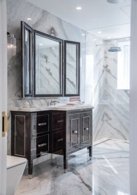 Supply and Application of Marble and Onyx in Baths, including Shower Bases and Washbasins model PURE byannopei; Kitchen Countertops and Furniture Pieces.