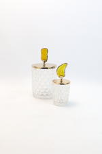 Pote de vidro e aplique em Ágata Amarela, tamanhos S e L