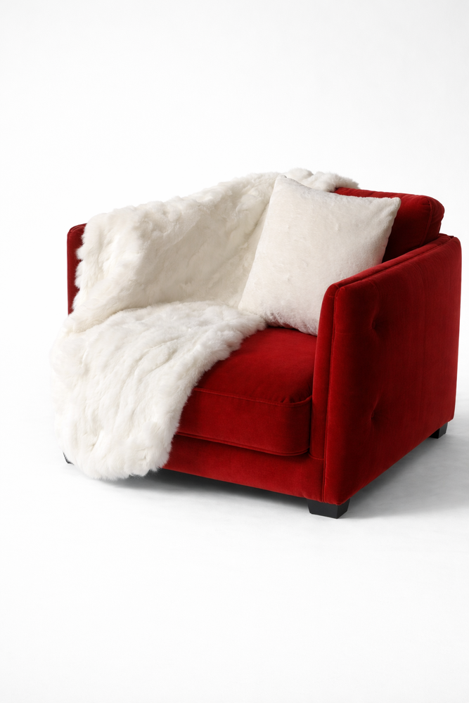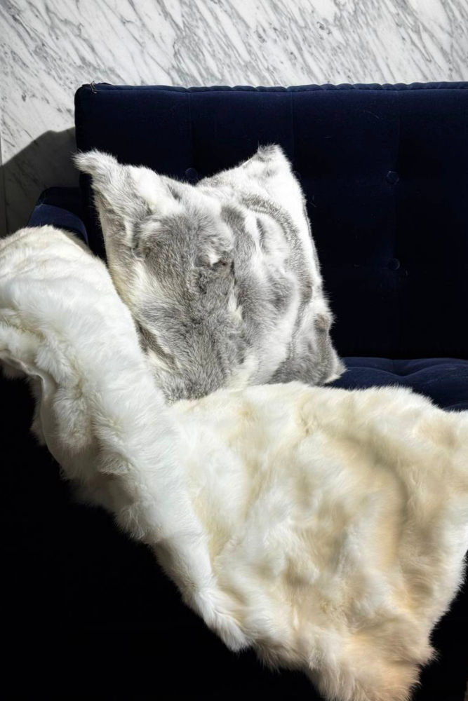 Envolva-se na suavidade e na elegância desta manta em pele de coelho branca, que oferece um toque irresistível de luxo e conforto.