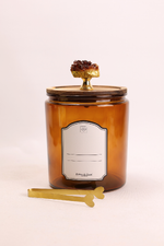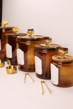 The OLENA Set combines the natural beauty of amber glass with the sophistication of acacia wood and the uniqueness of citrine geode.