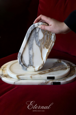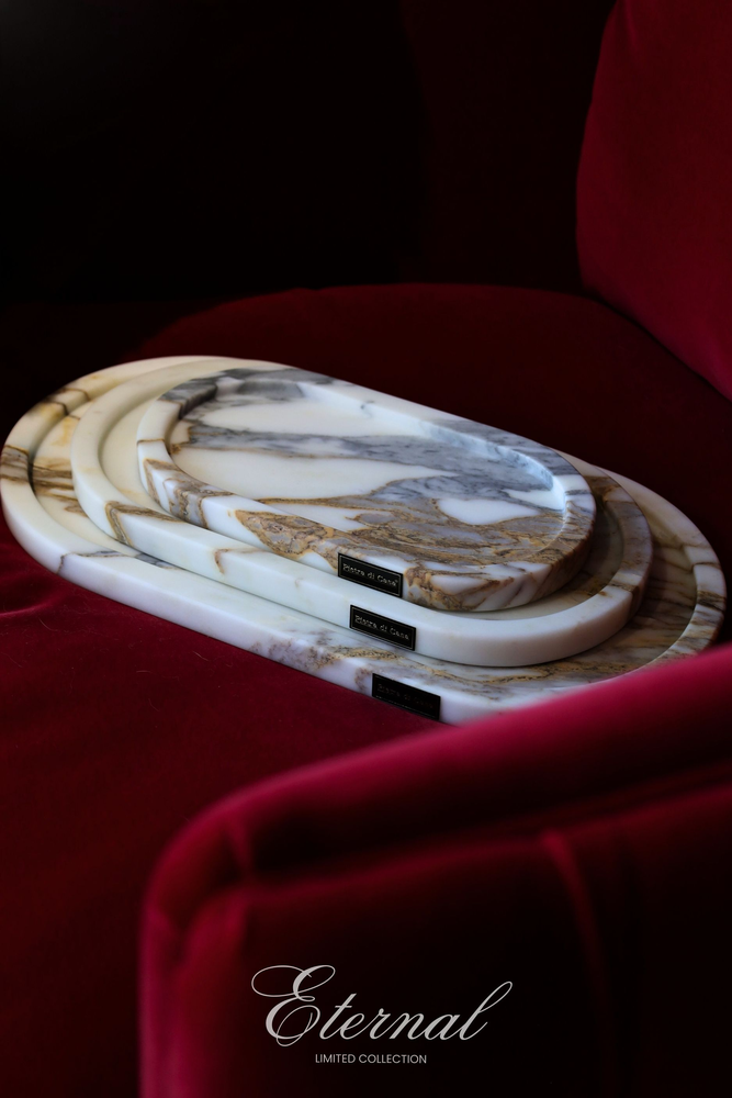 O mármore Calacatta Gold expressa um amor que ilumina. Os seus veios dourados percorrem a superfície como memórias que aquecem, trazendo sofisticação, luz e delicadeza aos espaços. Neste tabuleiro, a pedra natural transforma a organização em um gesto elegante e intemporal — perfeito para quem valoriza detalhes que permanecem.