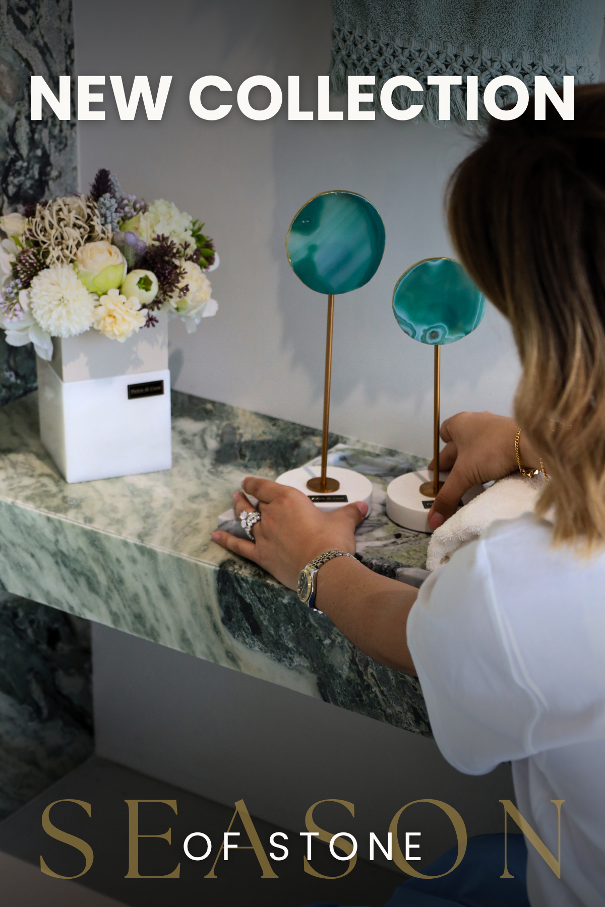 - Em Ónix Rosa, Cristal Branco ou fumé, maciço,
