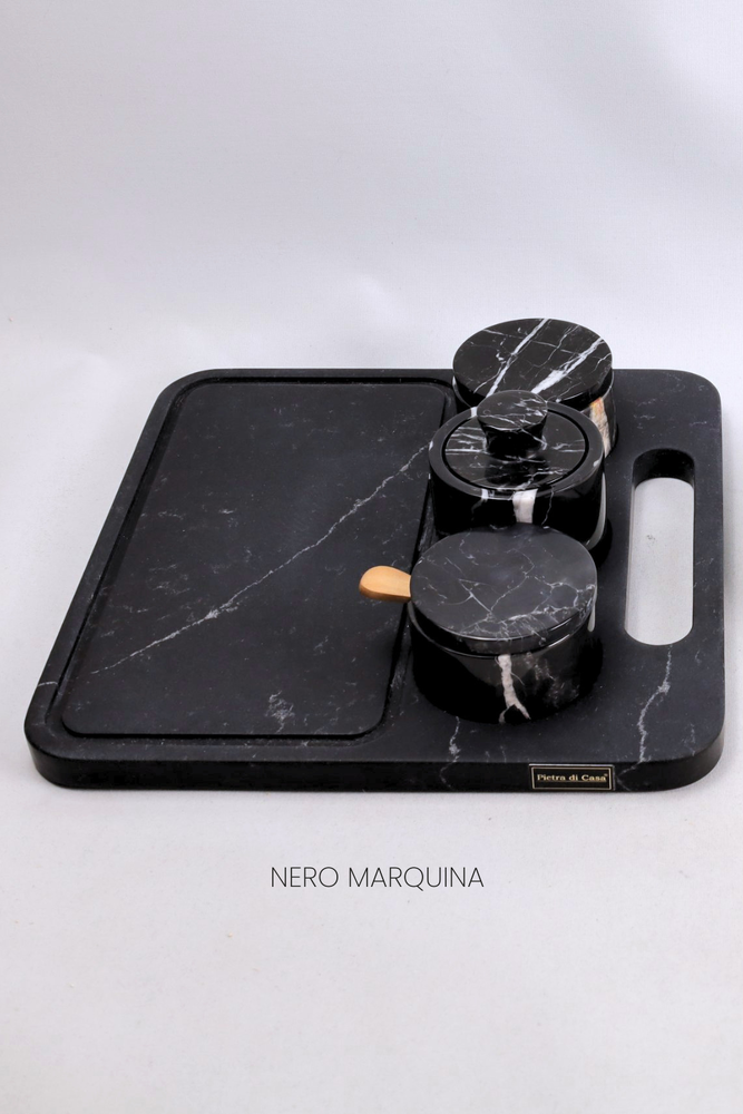 Disponível em referências: Black — Nero Marquina; White — Calacatta